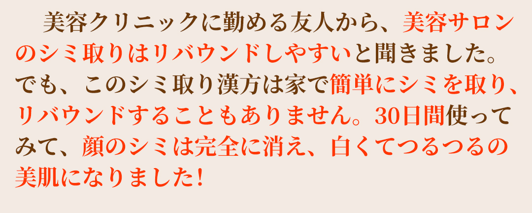 顔のシミが完全に消えるとは!