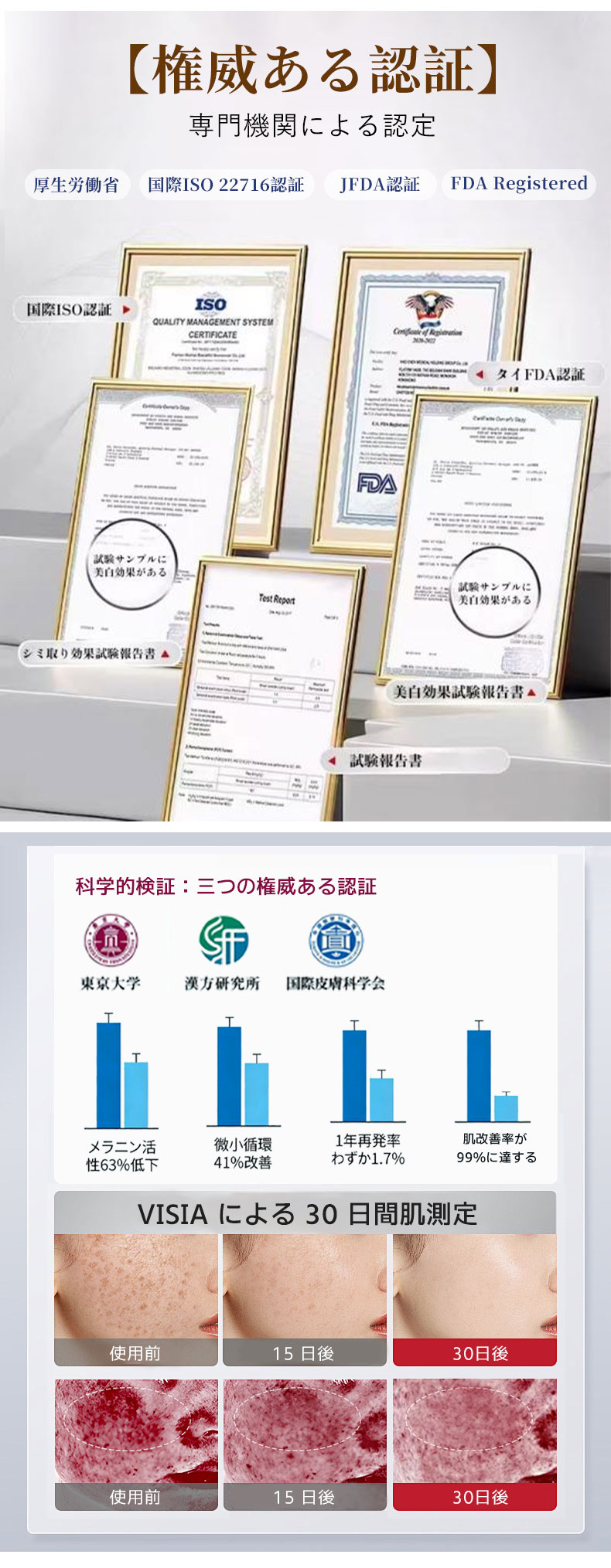 肌のダメージを修復し、明るさを高め、シミを消す効果を実現します。