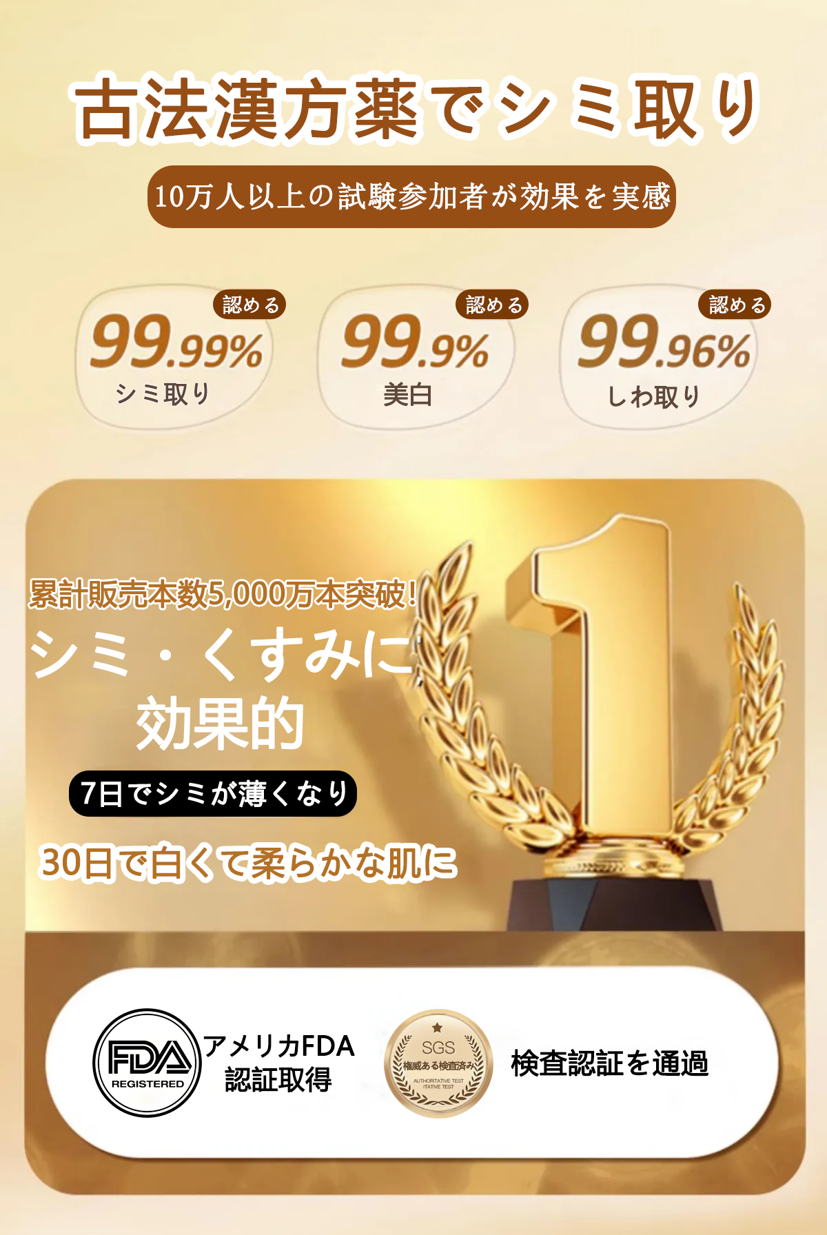 短期間でシミを除去し、
